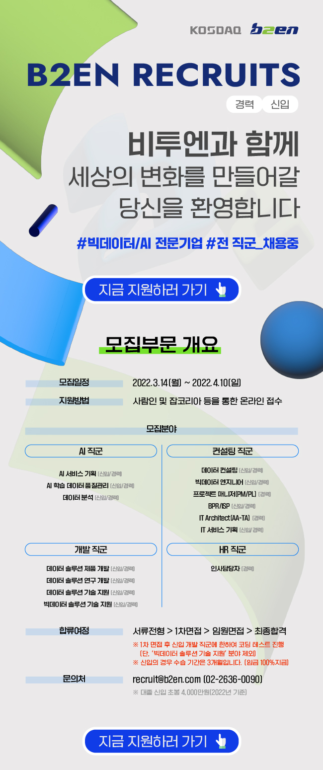 | [채용공고] 새로운 비투엔人을 찾습니다! (0) | 2020.07.28 |