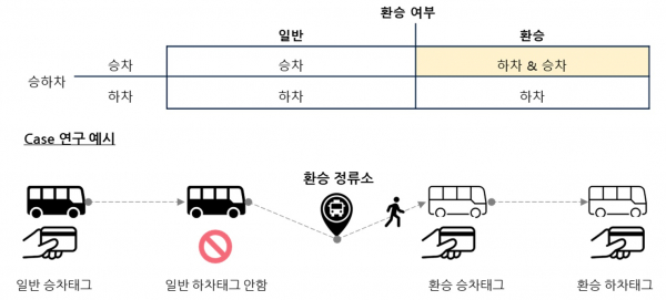 시민들의 버스 이용 패턴을 분석하기 위해 없는 하차 데이터를 만들어야 하는 상황이었다. 우리는 우선 데이터가 가진 속성들의 맥락을 연구하기 시작했다. 그리고 발생할 수 있는 사례별로 하나씩 하차 정보를 찾아 나가는 방식으로 가능한 많은 하차 데이터를 만드는 과정을 반복했다.
