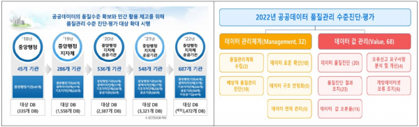 2018년 45개 기관에서 시작해 2022년 약 680여 개 기관으로 확대됐고, 향후 전 공공기관으로 확대·시행할 계획을 갖고 있다. 그 결과 시행 초기보다는 많은 기관이 데이터 품질의 중요성에 대해 인식하고 있으며, 자연스럽게 데이터 품질도 점차 개선되고 있는 것으로 평가되고 있다.
