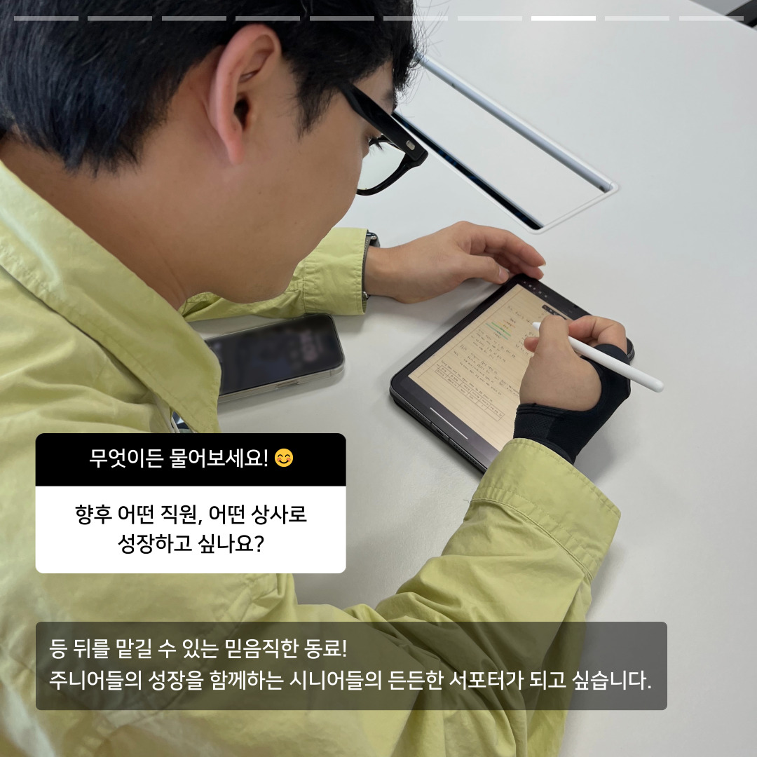 사우님들께서 열정적으로 업무에 임하시는 모습을 보며 저도 더욱 열심히 해야겠다는 자극을 받아요!