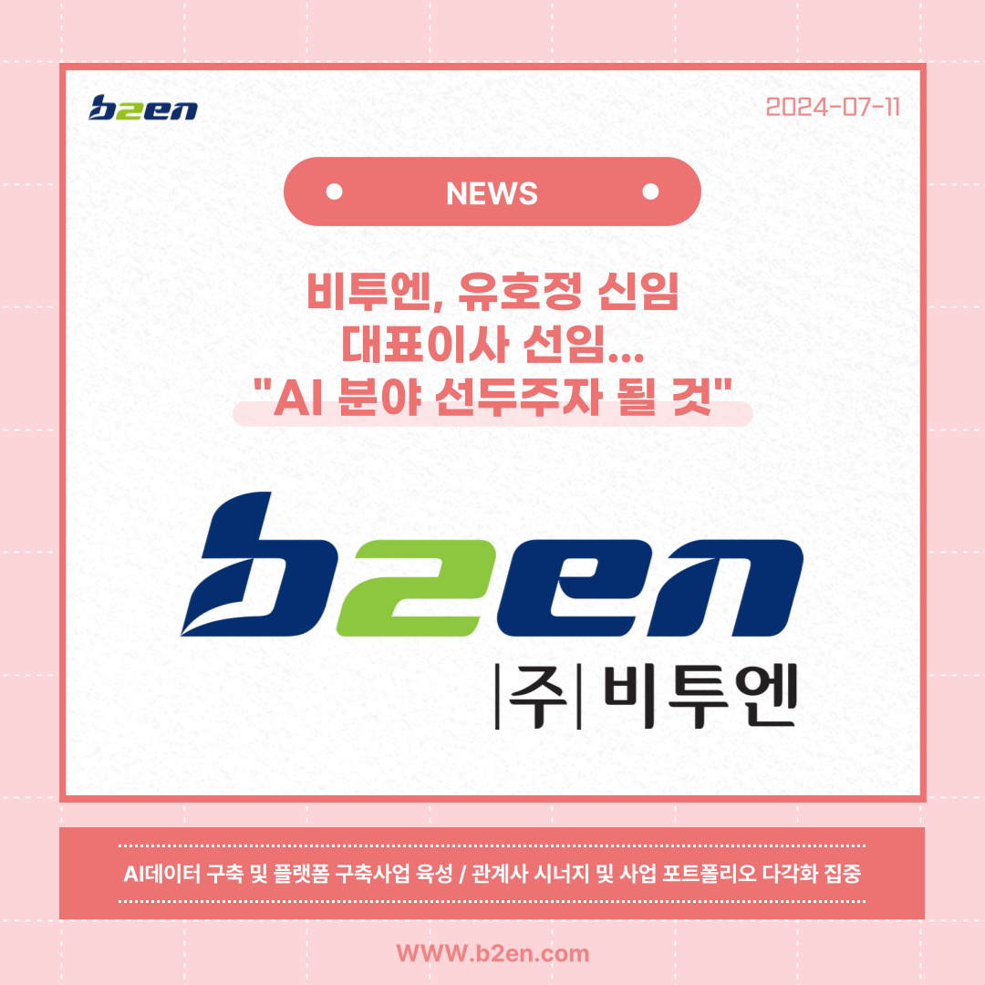 비투엔 관계자는 "유 대표의 풍부한 경험과 역량을 바탕으로 주력사업인 AI·빅데이터 부문 성장에 총력을 다하겠다"며 "관계사 시너지 강화와 비즈니스 파트너십 확대 등을 통해 사업 포트폴리오 다각화에 집중할 것"이라고 말했다.