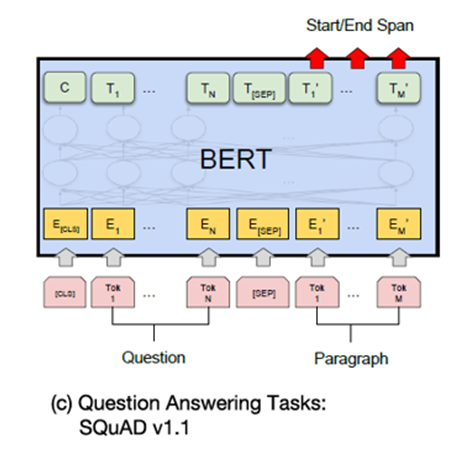 - question, paragraph를 쌍으로 받아서 paragraph에서 answer가 입력되어 있는 시작점 토큰부터 답을 반환