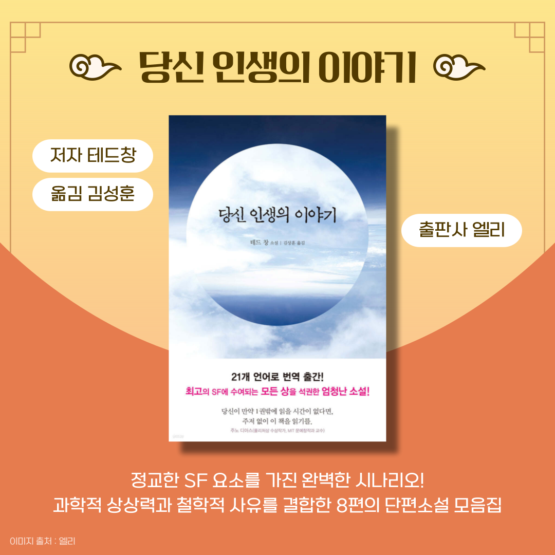 과학적 상상력과 철학적 사유를 결합한 단편소설 모음집으로, 영화 ‘Contact’의 원작이자 외계 생명체와의 만남을 그린 ‘네 인생의 이야기’를 포함하여 총 8편의 단편이 수록되어 있습니다.