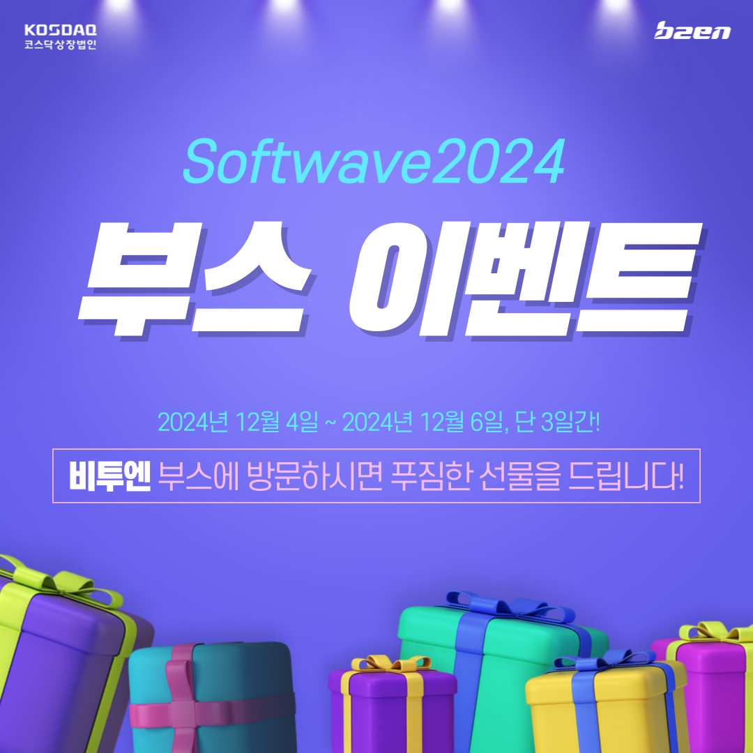 소프트웨이브2024 저희 비투엔 부스에 방문하시어 다양한 이벤트와 함께 풍성한 상품 받아가시길 바라겠습니다.