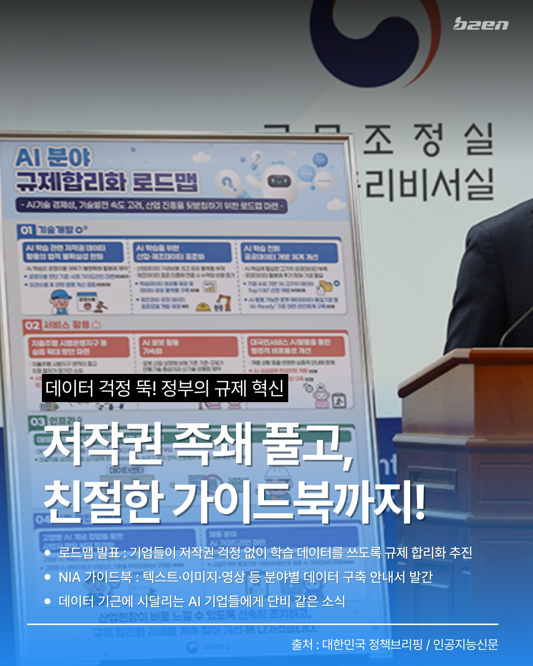 - 로드맵 발표 : 기업들이 저작권 걱정 없이 학습 데이터를 쓰도록 규제 합리화 추진