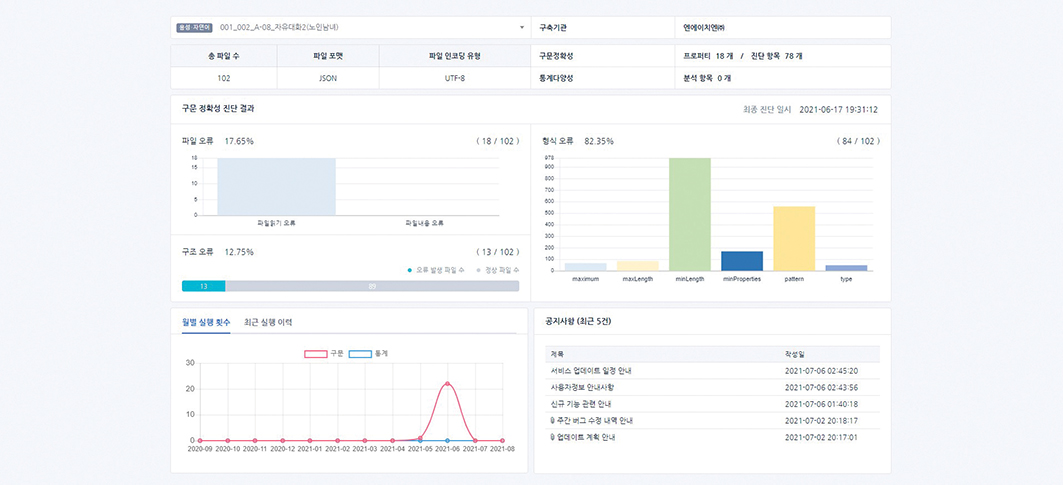 또 학습데이터의 규모 분석, 클래스의 다양성 분석 등 통계적 다양성 분석 기능을 제공해 품질 검수 비용 절감 및 고품질 학습용 데이터 확보가 가능하도록 지원한다.