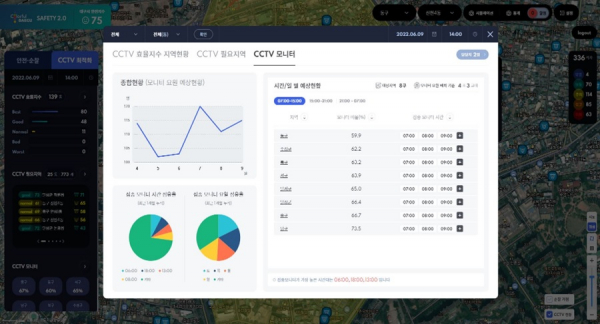 CCTV 최적화 서비스는 안전도와 음영지역 등을 복합적으로 분석해 CCTV를 보강할 지역을 추천하는 알고리즘이다. 또 위험도가 가장 높은 시간에 대한 추이 분석의 결과로 집중 모니터링이 필요한 시간을 예측하기도 한다.