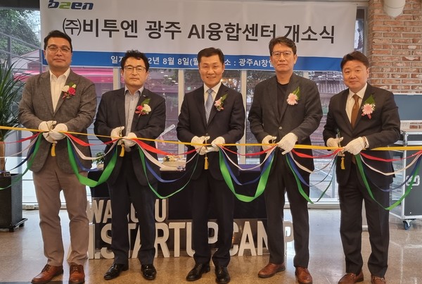 비투엔이 국가 인공지능 혁신 거점인 광주광역시에 AI융합센터를 개소하고 본격 운영에 나섰다. 지난 8월 8일 조인철 광주시 전 문화경제부시장, 이길행 ETRI 호남권연구센터장, 곽재도 인공지능산업융합사업단 본부장, 조광원 비투엔 대표, 고용길 비투엔 AI융합센터장 등이 참석한 가운데 지난 8월 8일 개소식을 진행하였다.
